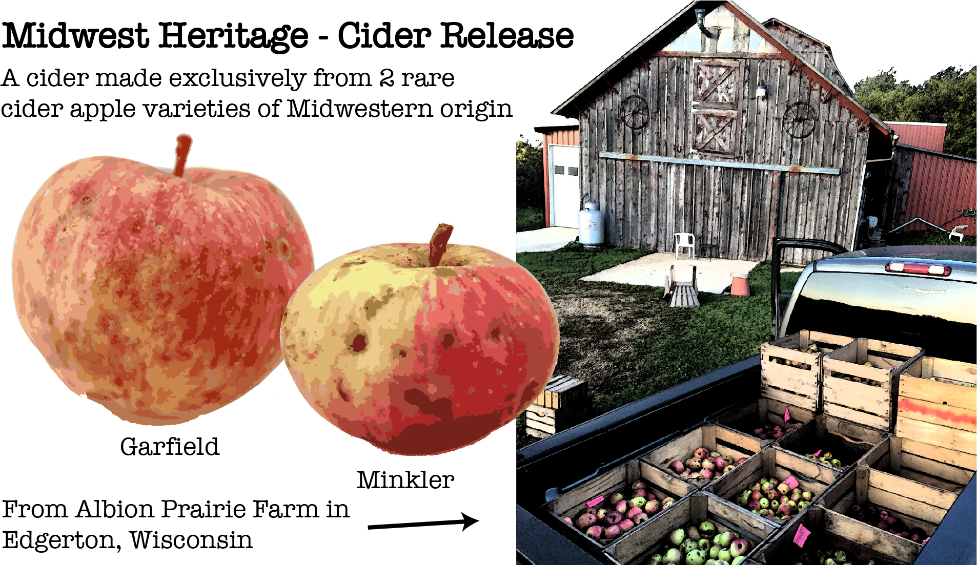 Above: Our Midwest Heritage cider release will be on Friday, August 9th with live music from Van Orman and Helwin